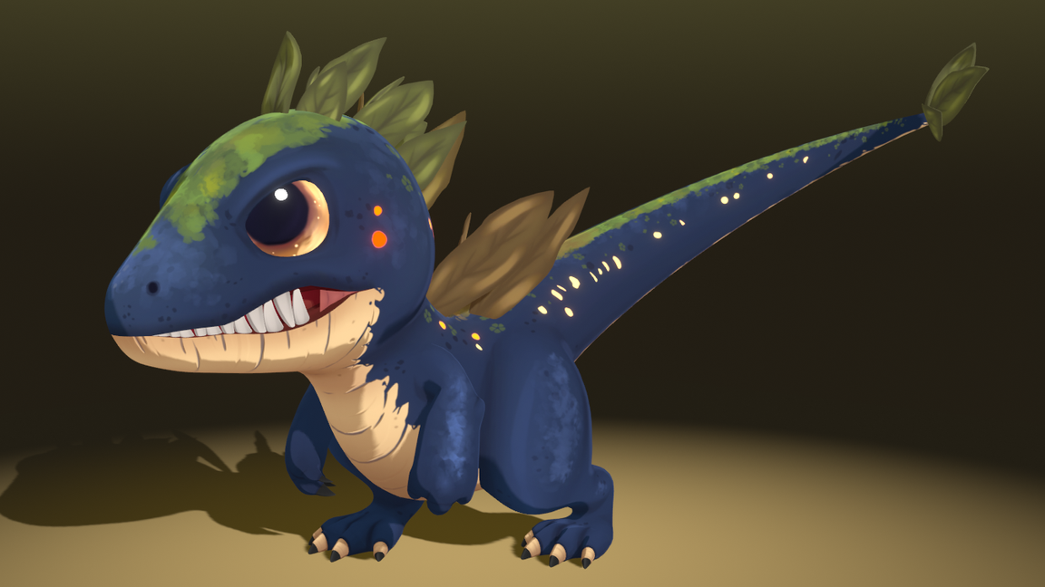 A sci-fi-themed dino with leaf and moss covering it's body. This project was a study on creature art and complex rigging ready for animation. The aim was to have an expressive and flexible model with a handpainted style.